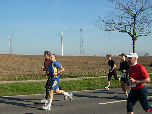 Wieder an der Kapelle vorbei läuft mir Olaf Schmalfuß, Klaus Neumann und, ich glaube, Eberhard Ostertag entgegen. Der fällt mir auf, da er mich wegen meinem Shirt anspricht. Da will ich mal was hinzutun, dass ich weitere Autoren von marathon4you.de künftig kennen lerne. Vielleicht langt’s mal für einen Stammtisch.