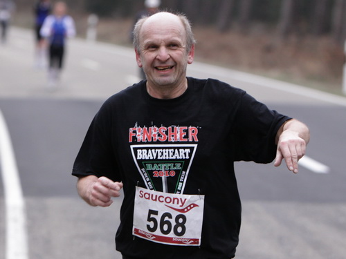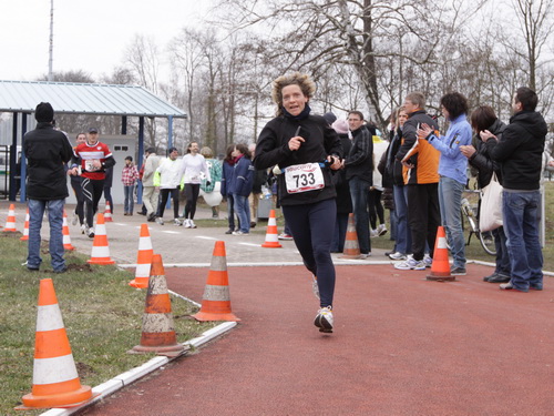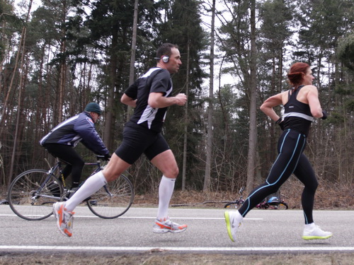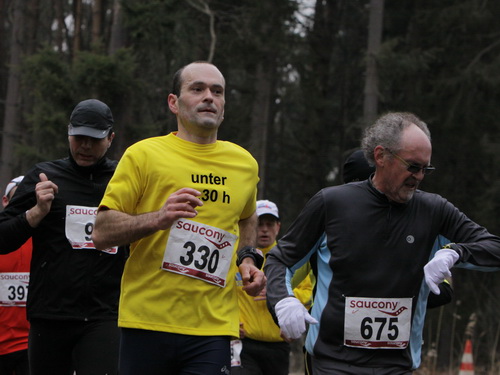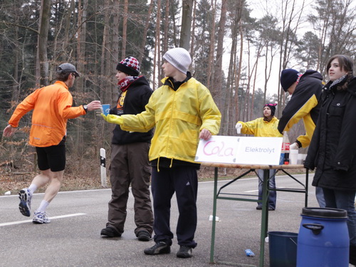 Den bekomme ich auch zunehmend vor der Strecke. Wieder auf der Rücktour kann man teilweise zwei bis drei km geradeaus schauen. Asphalt, Wald, Läufer. Und Schmerzen in den Beinen. Tja, die Strecke. Drücken wir es mal positiv aus: Sie ist ideal zum Trainieren mentaler Härte. Gut, das habe ich ja vorher gewußt und muß da jetzt durch. Die vergleichsweise hohen Teilnehmerzahlen geben dem Veranstalter aber eindeutig recht. Es gibt ja auch nichts zu meckern, überhaupt nicht. Ein paar Zuschauer wären jetzt schön, aber außer am Anfang ist diesbezüglich Fehlanzeige.