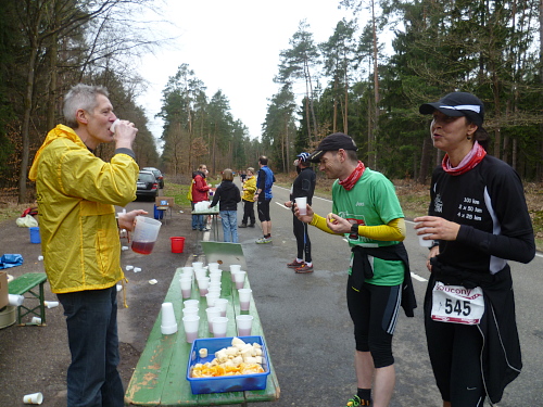 Norbert kommt angerannt. Er ist noch kein bisschen langsamer. Ich bin froh, den Wendepunkt bei km 26 zu erreichen. An der nächsten VP gibt es zum ersten Mal Cola. Na, wenn das nicht hilft!