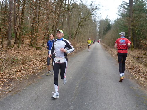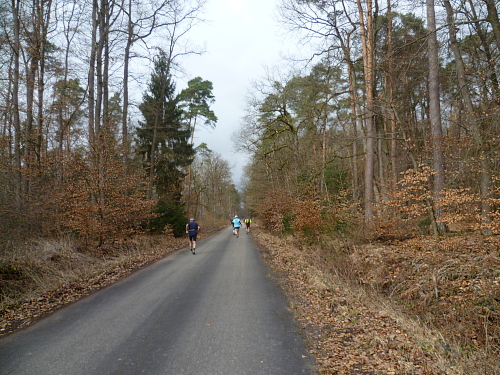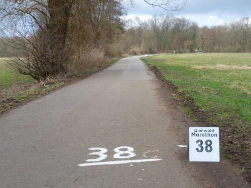 Km 21, ich hab den Abzweig Richtung Büchelberg erreicht. Halbzeit. Klaus macht jetzt hier seine Bilder, daher kann ich mir keine Schwachheiten erlauben. Mein Kopf sagt zwar: "Super Zeit"; meine Beine dagegen schreien: "Aufhören".