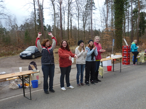 Weiter in lockerem Tempo erreiche ich den Ortseingang von Schaidt. Die Kapelle spielt heiße Rhythmen und das Publikum macht Stimmung. Beschwingt laufe ich weiter. Jetzt kommt Kathi, die den 3:45 er Pacer vor sich her jagt, und kurz dahinter Anja. Das klappt ja prima.