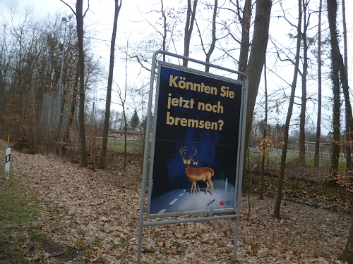 Wir erreichen den Abzweig Richtung Büchelberg. Leider dürfen wir da noch nicht hin. Erst müssen wir geradeaus nach Schaidt, umdrehen und zurücklaufen.