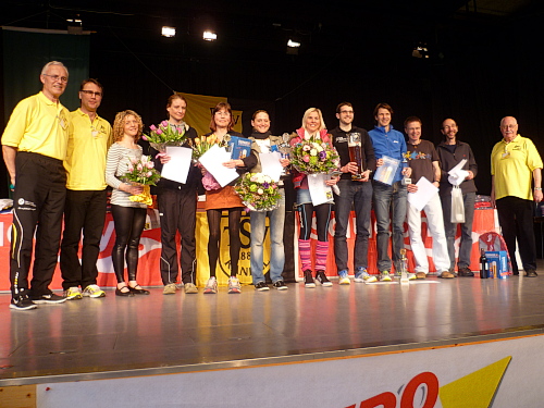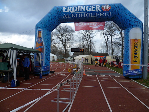 In der kleinen Halle wird die Siegerehrung vorbereitet. Rekorde sind heute keine gefallen. Trotzdem bewundern wir die gelaufenen Zeiten; vor allem die Leistungen der Altersklassenathleten sind wirklich herausragend.