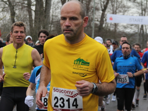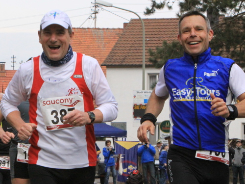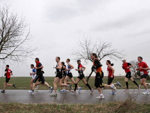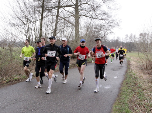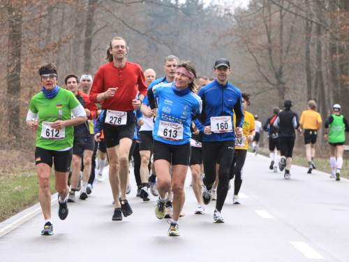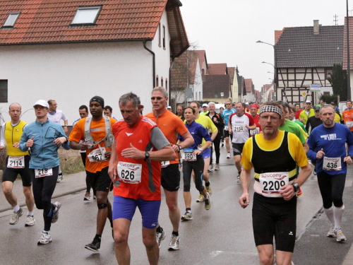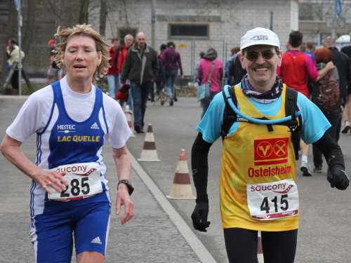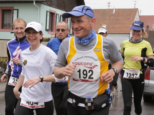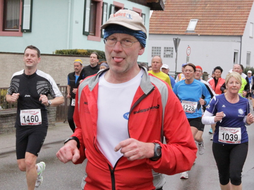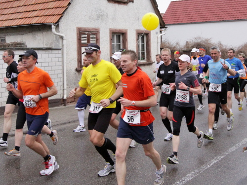 Um 5.30 Uhr klingelte der Wecker, kurz vor sieben holte ich Angelika ab, dann Bernd und eine Stunde später waren wir in Kandel. Diese Traditionsveranstaltung – 36. Marathon, 33. Halbmarathon - ist beinahe ein Gegenentwurf zu Nürnberg: Dort eine kleine, intime, heimelige Veranstaltung mit 170 Teilnehmern, ohne Druck und Hektik, hier 10mal so viele Teilnehmer (1.863 Finisher), 575 beim Marathon und 1.228 beim Halbmarathon, die meisten davon ambitioniert, ist doch Kandel ein Lauf mit bekannt schneller Strecke.