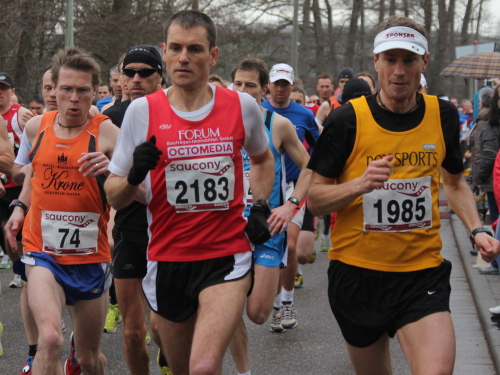 Aber das alles nur nebenbei, unser Hauptaugenmerk lag heute auf unserer Verfassung, die für zumindest fünf Stunden Marathonzeit ausreichen sollte und das waren 7:06 min/km oder gar schneller. Bernd wollte und konnte schneller laufen und reihte sich weiter vorne im Startfeld ein.