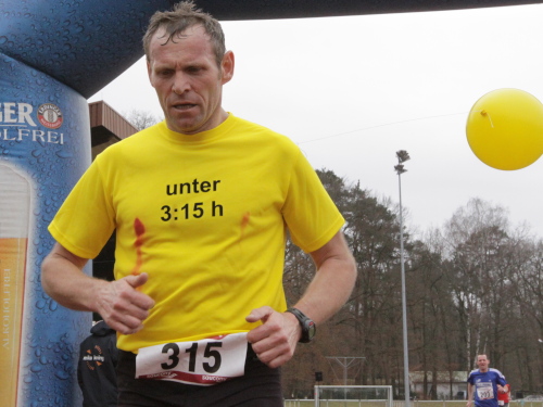 Die letzten vier Kilometer brachten wir auch noch gut hinter uns. Ich war im Hochgefühl, dass es heute so gut lief und das motiviert natürlich zusätzlich. Mit 4:46:08 h kamen wir dann ins Ziel, immerhin 17 kamen noch nach uns an. Wir waren rundum glücklich, so dass ich sogar vergaß, ein Finisherfoto zu machen. Die Auswertung ergab dann noch, dass ich jeden einzelnen Kilometer gleichmäßig gelaufen bin, +/-4 Sekunden und am Schluss sogar noch etwas zulegen konnte.