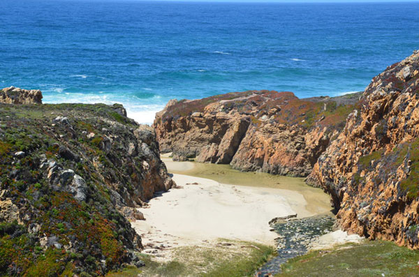 Ich lief mein eigenes Tempo ruhig und unspektakulär an, Zeit für viele Fotos unterwegs hatte ich aufgrund meines ambitionierten Zeitziels bereits von Anfang an nicht vorgesehen. So ging es die ersten 5 Meilen vom Start in der Big Sur Station (auf 300ft.) bis zum Andrew Molera St. Park 200ft. abwärts, ungefähr 60 negative Höhenmeter, waren somit problemlos ohne große Mühen zu laufen. Auf den nächsten 4,8 Meilen ging es mal kurz rauf und man sah nach den State Parks zum ersten mal den Pazifik in der Nähe des Point Sur Lighthouse. Dann ging esbis zum tiefsten Punkt der Strecke auf 40ft., an der Little Sur River Bridge, runter.