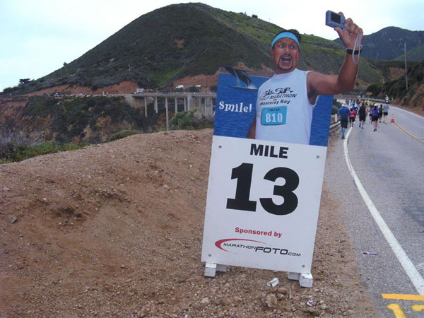 Bei meinem 1. Start im Jahr 2011 kam es zu einem ungewöhnlichen Ereignis: Die Straße, die teilweise direkt am Pazifik verläuft, rutschte ein paar Monate vorher auf einem Teilstück ab und stürzte ins Meer. Somit konnte erstmalig nicht der vorgesehene Kurs als Point to Point gelaufen werden, sondern die Veranstalter mussten leider kurzfristig umdisponieren und Start und Ziel nach Carmel mit Hin- und Rücklauf verlegen.