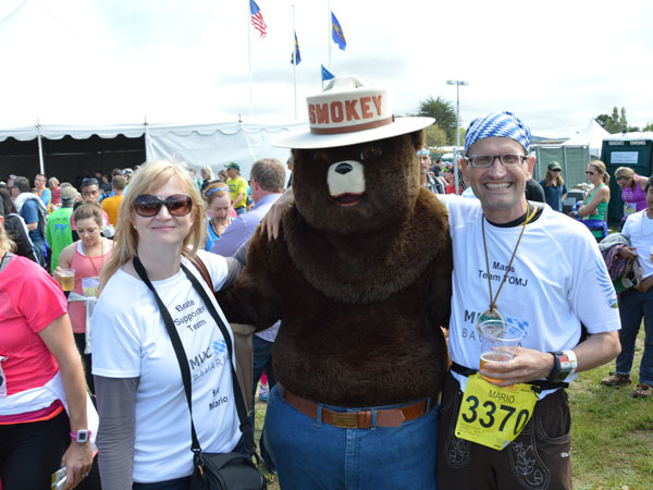 Bei Meile 24 zweigte man in den Point Lobos State Park ab, in dem musste ich 2011 eine Runde laufen, um auf die notwendige Distanz zu kommen. Jetzt waren es nur noch 2,2 Meilen und, ich wusste es schon, ein langer Anstieg vor dem Ziel. Die letzte Meile führte dann wieder abwärts zum Ziel in Carmel auf 25ft. Ich freute mich schon auf das Bier und entsprechend feierte ich auch den Zieleinlauf mit exakt 3:42:00. Beate, Linda und Bob erwarteten mich.