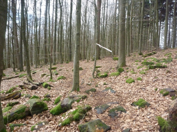 Hier oben im Wald gibt es riesige Müll- und Abraumhalden und solche aus dem Mittelalter. Aber Achtung: sämtliche Glashütten und Halden sind geschützte Bodendenkmäler, denn es finden sich noch jede Menge mittelalterliche Werkzeuge und Kleidungsstücke in den Halden. Geo-Cache-Foren halten sich glücklicherweise schweigsam, auch wenn die Halden deutlich sichtbar sind.