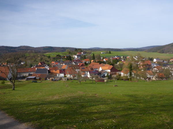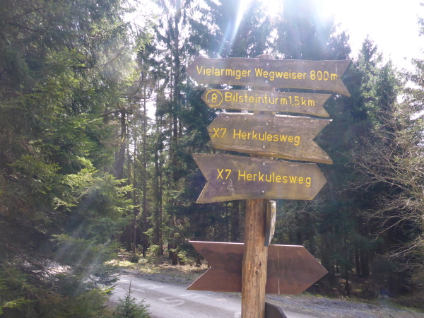 In Wickenrode hatte Frau Holle den Honighof in Brand gesteckt. Den Hof, auf dem einst die dicksten Kartoffeln wuchsen. Der geizige Bauer und seine Söhne verbrannten, die hübsche Tocher überlebte, ist inzwischen aber vermutlich auch tot. Hinter der Gemarkung Honighof biegen wir ab und laufen im Bogen wieder hinauf Richtung Bilstein.