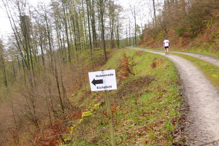 Zunächst geht es hinauf zum Rodeberg, übersetzt: der gerodete Berg. Ich laufe im Spitzenfeld, verscheuche zwei Rehe, bin schnell bei der Hermannseiche. Ist sie nach Hermann dem Cherusker benannt? Schnell, sehr schnell geht es hinab. Mein Knie macht mir seit meinem Unfall in Australien Probleme. Wir sehen die Häuser von Ermschwerd, dann geht es wieder hinauf und schnell ist der Rodeberg umrundet.
