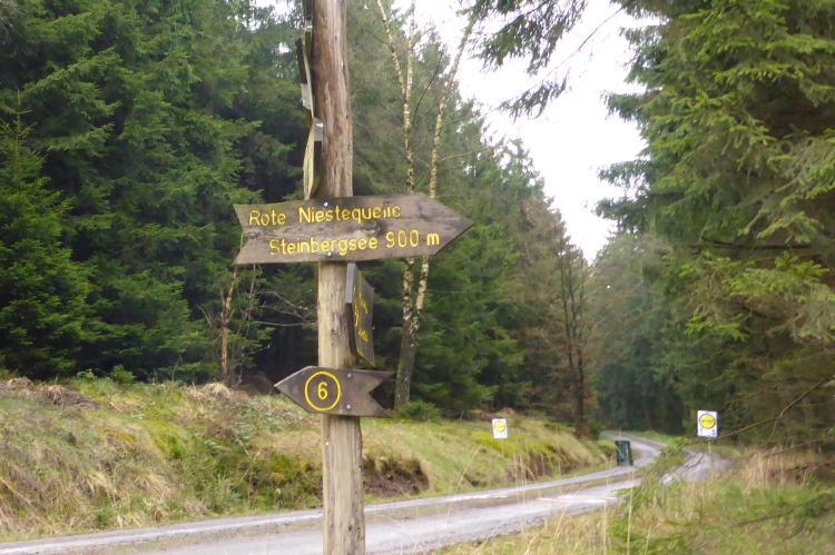 Hier ist die Grenze zwischen Hessen und Niedersachsen sehr undurchsichtig, es gibt mehrere komische Enklaven, die tief ins jeweilige Land reichen. Laut Grenzsteine ist Niedersachsen nun im Westen. Auf der Landkarte sieht die Grenze aus, als hätte hier jemand zuviel getrunken. Es könnten alte Jagdpfade gewesen gewesen sein, oder es waren Wasser- oder Bergbaurechte, die uns nun auf einer Länge von 500 Metern viermal zum Grenzgänger machen. Erst zweimal seit Menschengedenken wurden winzige Gebiete getauscht: 1831 drei, vier Häuser von Nieste, und 2004 kam dann die eine Häfte des Tennisplatzes von Nieste an Hessen. Ab da war ein Aufschlag von östlicher Seite öfters „drin“ .