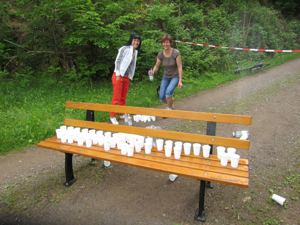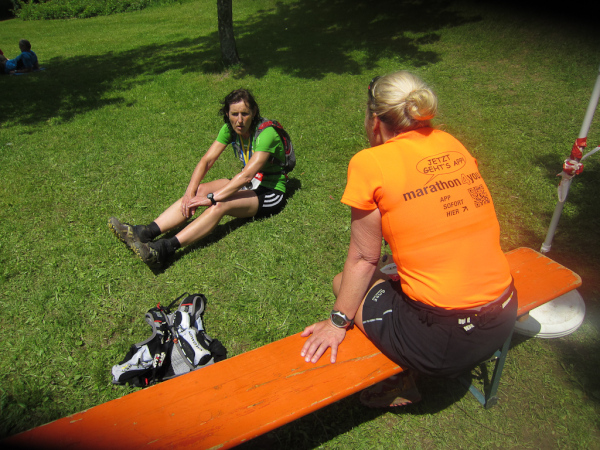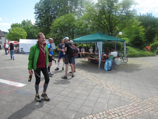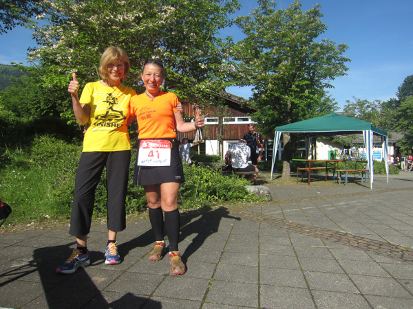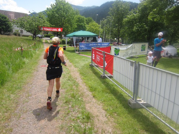 Gudrun, klagt über brennende Oberschenkel beißt sich aber durch. Mal wieder fast eine Punktlandung hingelegt. 4 Minuten noch bis zum offiziellen Zielschluß. Dessen ungeachtet blieb das Ziel noch sehr viel länger offen und auch die Läuferinnen und Läufer, die nach uns das Ziel erreichten, kommen noch in die Wertung.