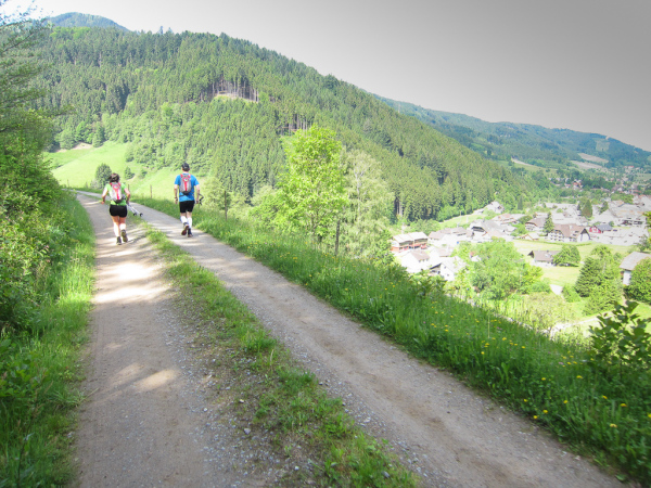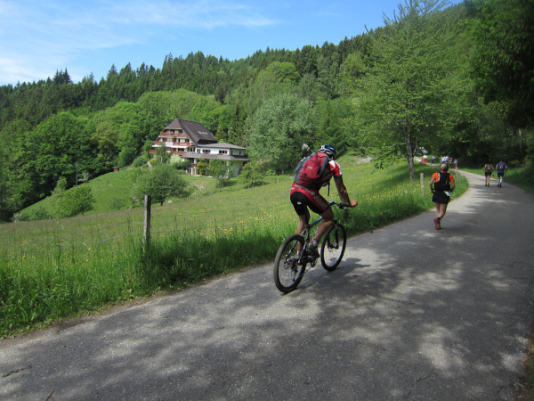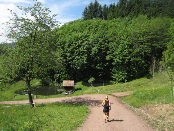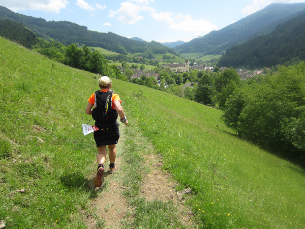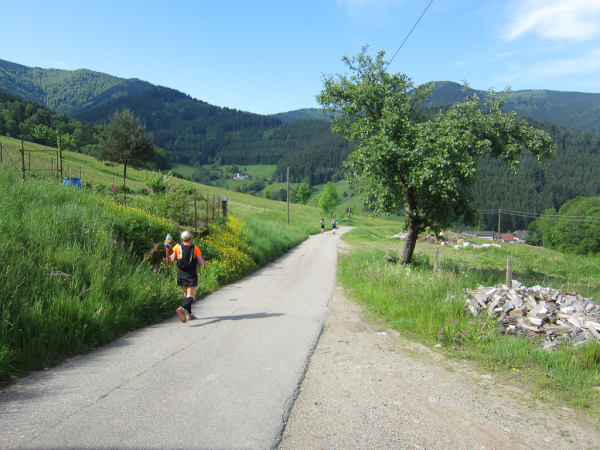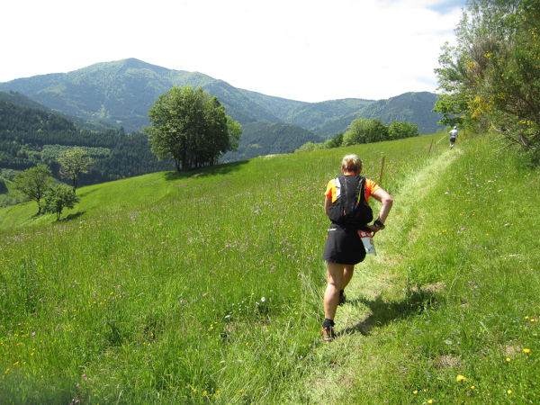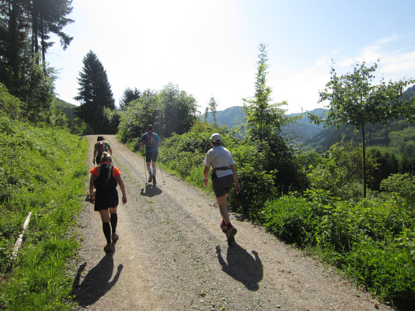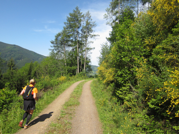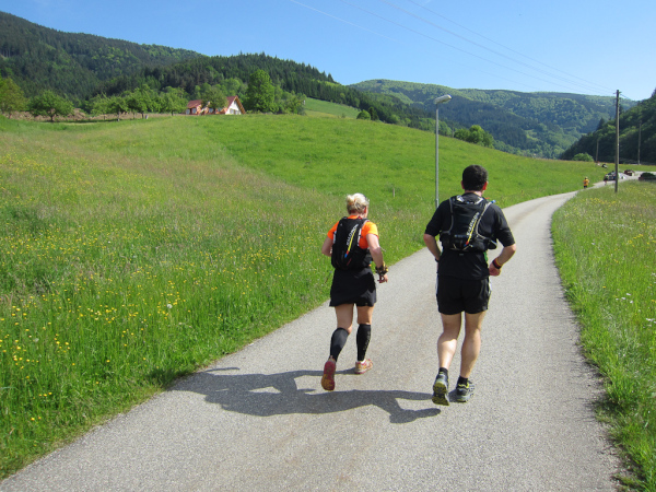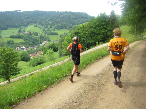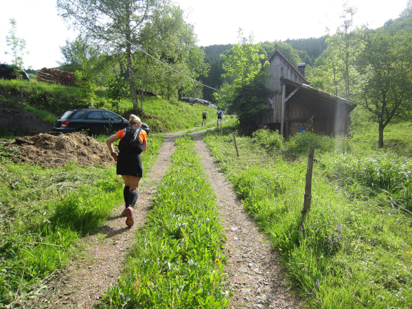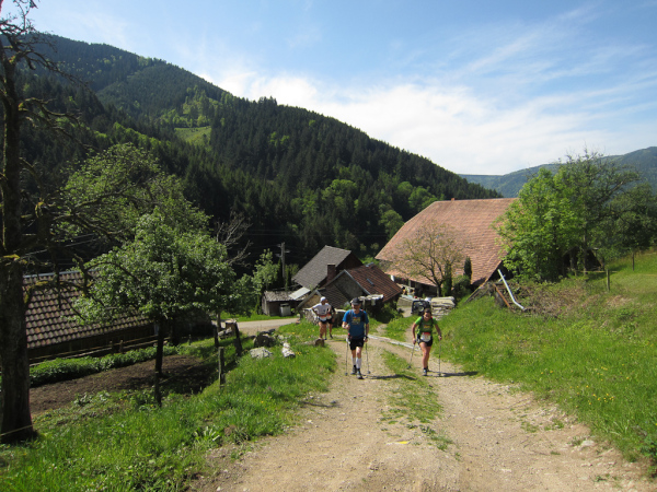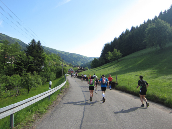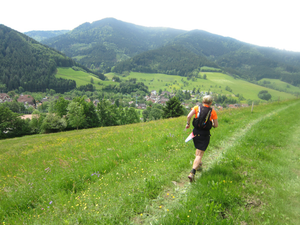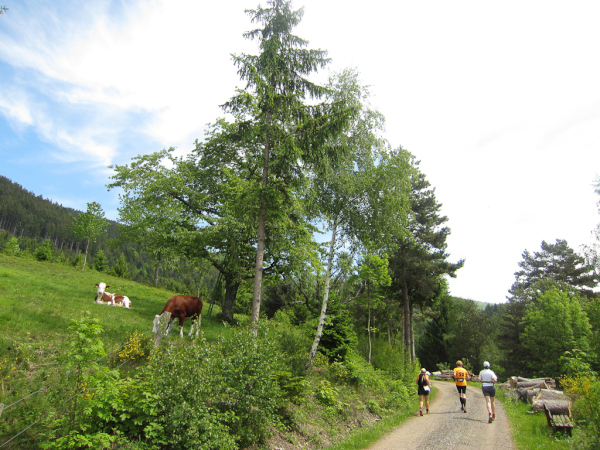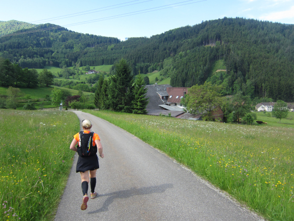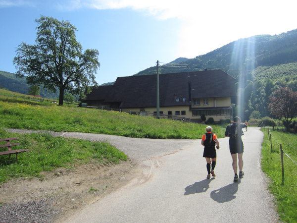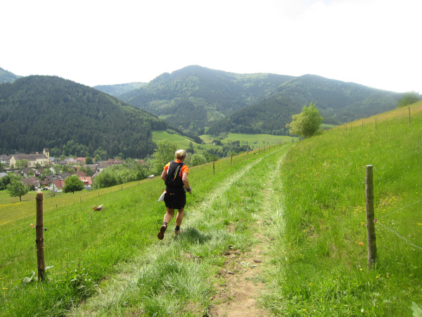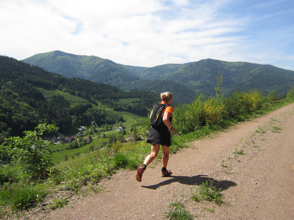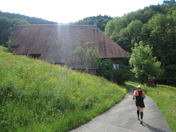 Heute laufen wir den „Panoramatrailrun“ mit 27,1 Kilometern und 1140 Höhenmeter. Start und Ziel ebenfalls wieder in Simonswald. Schon nach wenigen Minuten geht es aufwärts. Es folgt ein ständiges “Auf- und Ab”.