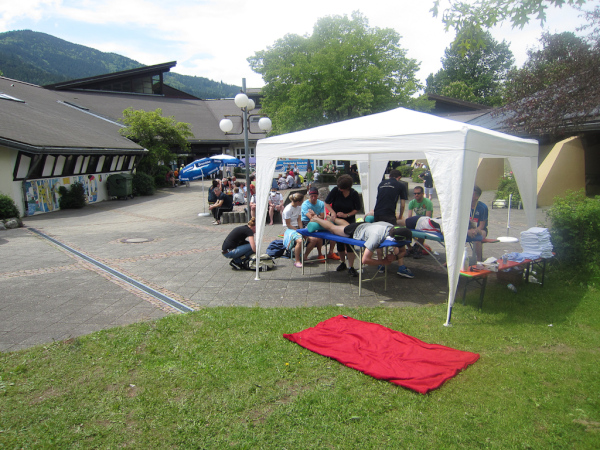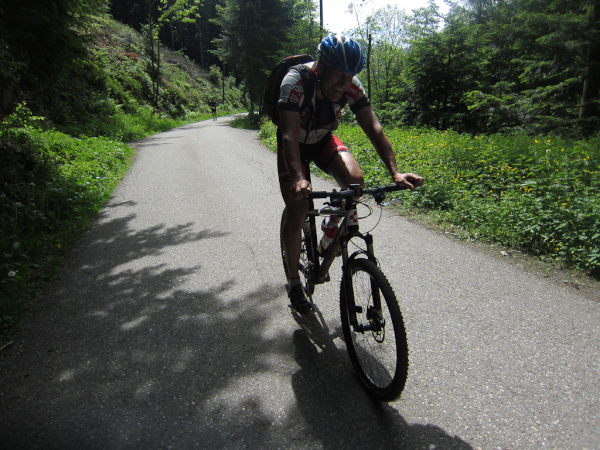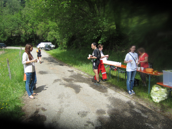 Kann man das „Natural High“ mit künstlichen Drogen gleichsetzen? Müsste ich auf die Droge Natur verzichten, würde ich krank werde? Farn sprießt in den bemoosten Felsenwänden. An jeder Kehre bieten sich uns neue atemberaubende Einblicke hinunter in den schroff abfallenden Hangwald. Den Moderator hört man bereits bis hier hoch. Letzte Verpflegung und nur noch 2 Kilometer abwärts.