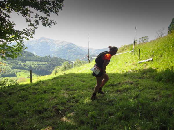…oder bist du schon im Ziel? Die letzten Kilometer an diesem Tag liegen vor uns – das Ziel ist greifbar nah. Ein letztes Mal hoch, ein letztes Mal runter nur noch ein kleiner Trail und eine steile Wiese.