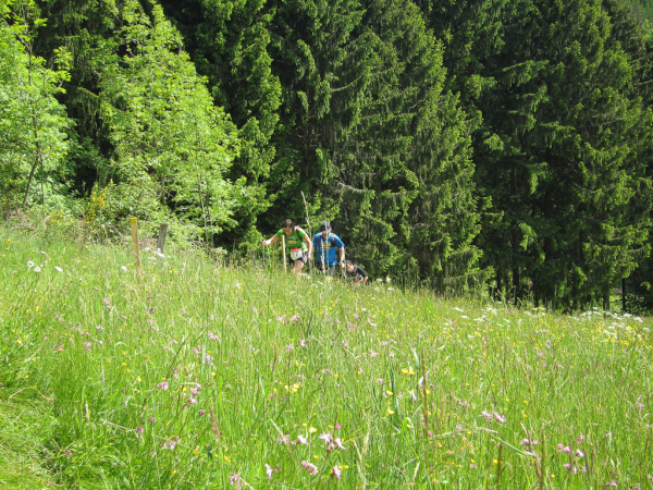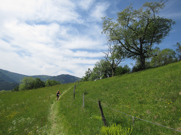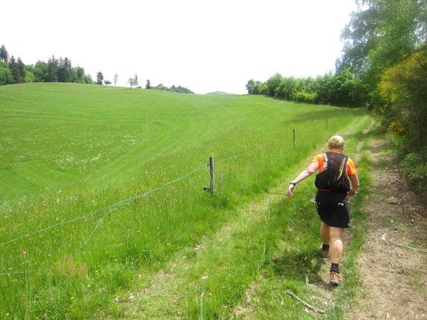 Wir kommen auf die Strecke von gestern. Ein letztes Mal hoch, ein letztes Mal runter, nur noch ein kleiner Trail und eine steile Wiese und…