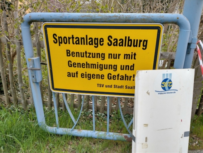 Kurzzeitig müssen wir sogar zugreifen, denn Bäume liegen auf dem Weg und sind noch nicht verräumt. Ein Stichweg führt uns steil hinunter zur Saale. Dort geht es auf dem Uferweg nur knapp oberhalb des Saalewassers weiter. Teilweise besteht der Untergrund aus Gras, dann wieder loses Geröll und Wurzeln. Und dann habe ich mein persönliches Déjà-vu. Kurzzeitig schaue ich in die Ferne und bleibe mit dem Fuß irgendwo hängen, das mich straucheln lässt. Die Schwerkraft besorgt das Übrige. Mich haut es gewaltig hin und kann nicht mehr reagieren. In der Flugphase denke ich panisch, nur nicht auf der steilen Uferböschung landen, da ginge es schnurstracks ins Wasser. Die Landung, luftsporttechnisch als “hard landing” beschrieben, ist alles andere als lustig. Ich falle seitlich auf die Schulter, glaube im ersten Moment an eine Lähmung der Schulter, der Brustkorb schmerzt. Aber wie heißt es, aufstehen, Mund abputzen und weiter. Meine größte Sorge: hoffentlich hat niemand den Sturzflug gesehen.