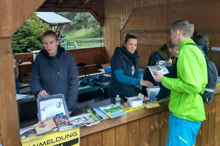 Schnell vergeht die Zeit, bis wir aufgerufen werden, denn die Orga will noch letzte Hinweise geben. Insbesondere sollen sich die Abbrecher, die ihr Rennen nicht zu Ende laufen, bei einem Posten oder einem Helfer melden. Es soll ja nicht ein Suchkommando nach Zielschluss beauftragt werden, abtrünnige Läufer zu finden, die in Wahrheit vielleicht schon zuhause sind.