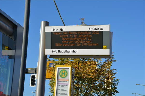Im Laufe der Marathon-Vorbereitung wurden die Trainingsrunden immer länger. Ein Problem, das sich dadurch ergab, war die Getränkeversorgung. Ich hatte einfach keine Lust, über 30 km eine Flasche mit mir herumzutragen. Hier möchte einen besonderen Dank an die Berliner Marathon-Legende Bernd Hübner und seinen Lauftreff aussprechen, die mich herzlich willkommen hießen und durch deren super Organisation es richtig Spaß machte, 30 km und mehr zu laufen. Doch selbst 33 km sind nicht 42,2 km und der 30. September war nun da.