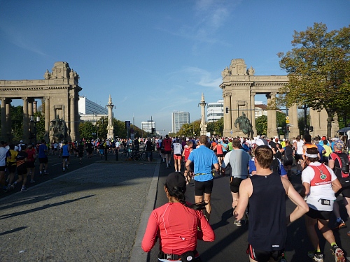 An der Siegessäule teilt sich das Läuferfeld. Das ist schon beeindruckend, die einen links, die anderen rechts, ohne politischen Hintergrund. Die Siegessäule wurde zur Erinnerung an die deutschen Einigungskriege errichtet. Ja, Deutschland existierte schon ein bißchen vor Adolf .