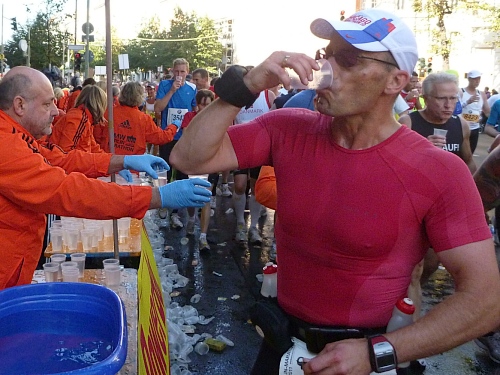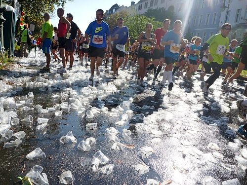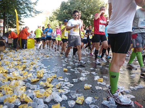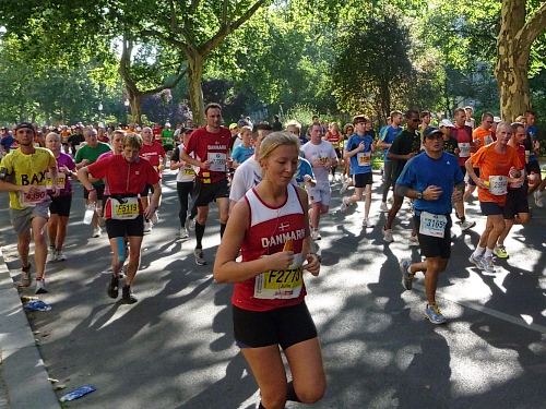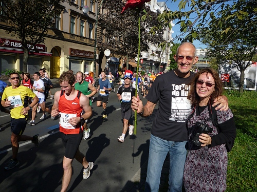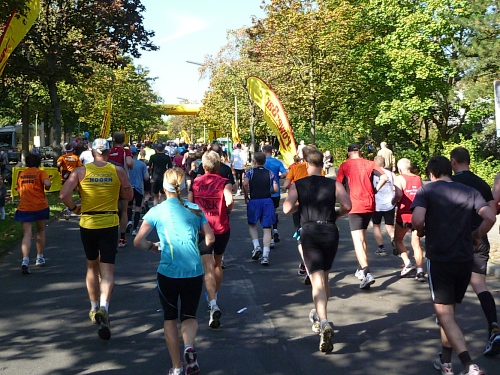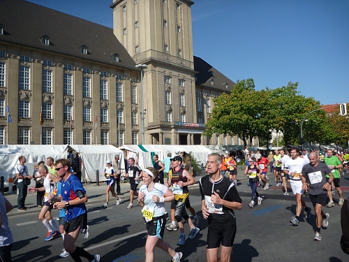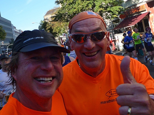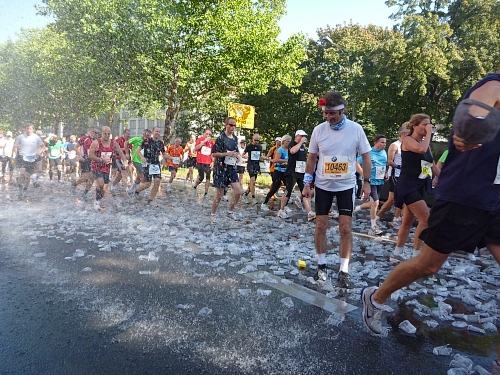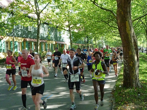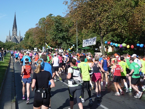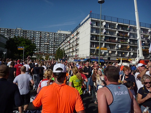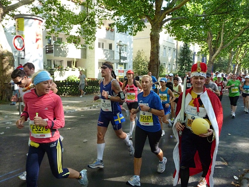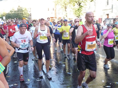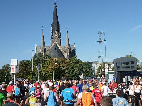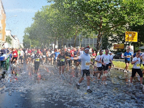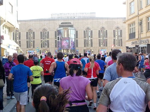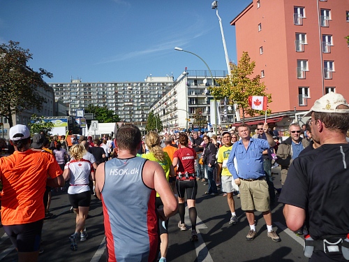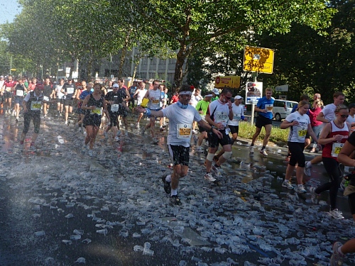 Es wird ein Lauf in Trance werden, soviel ist klar. Jenseits der Wahrnehmung aller Realität, einfach ein Lauf im Taumel eines begeisterten Publikums, dass in unglaublichen Massen die Laufstrecke bevölkert. Gefährlich aber bei den zahlreichen Erstlingen, die haben bald deutlich sichtbar Probleme. Jetzt kommt auch noch Gegenwind auf. Leicht und kühl.