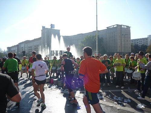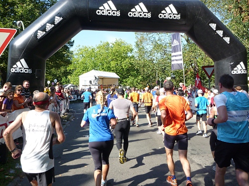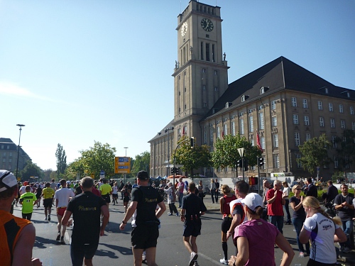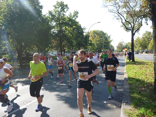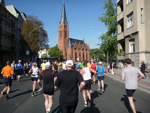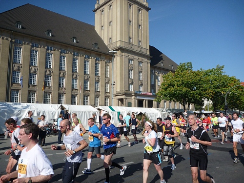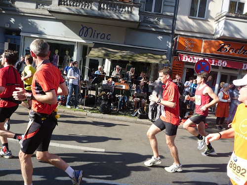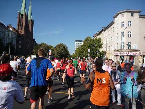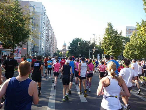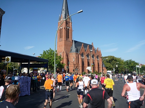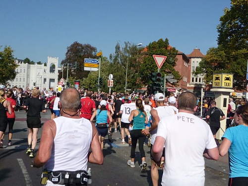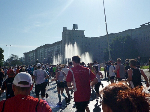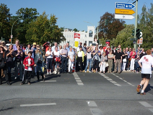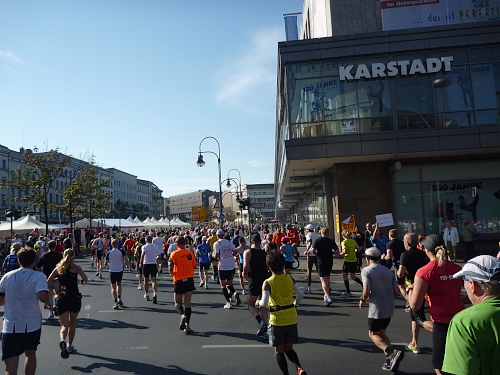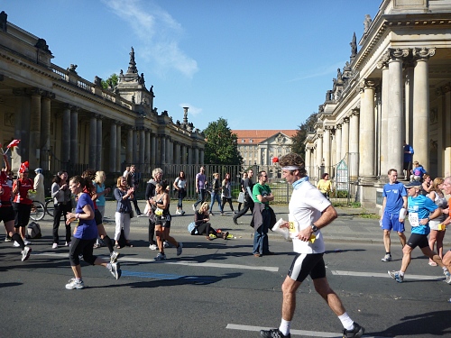 Komisch, der Platz ist sehr unscheinbar. Mir geht es wie den anderen Läufern: Dieser Marathon überstrahlt alles, es ist sehr schwierig die Sehenswürdigkeiten Berlins zu erkennen. Wer es schaffen wird, der wird sich an das Brandenburger Tor erinnern, an sehr, sehr viel Stimmung, die privat von den Berlinern mit Musik und Anwesenheit kreiert wird.