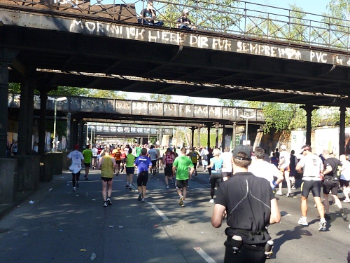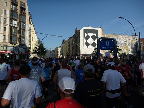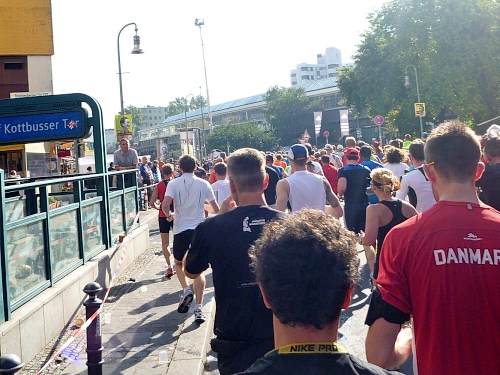Kottbusser Tor, Kottbusser Damm km 16 nach Neukölln. Sehr schwierig dieses Punkte zu erkennen, selbst als erfahrener, zeithabender Läufer kann ich in dem Gewusel nur schwer die Orientierung halten.