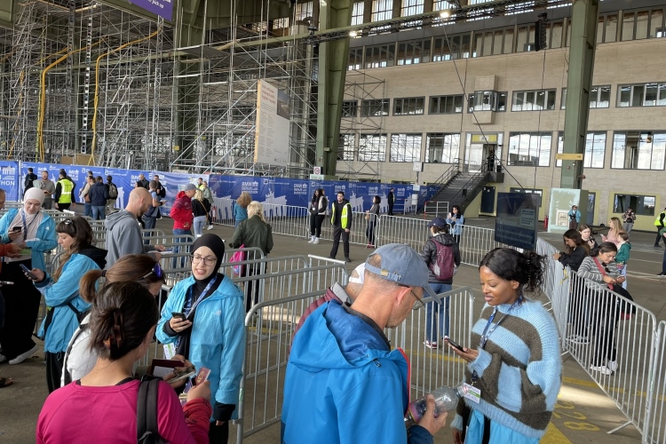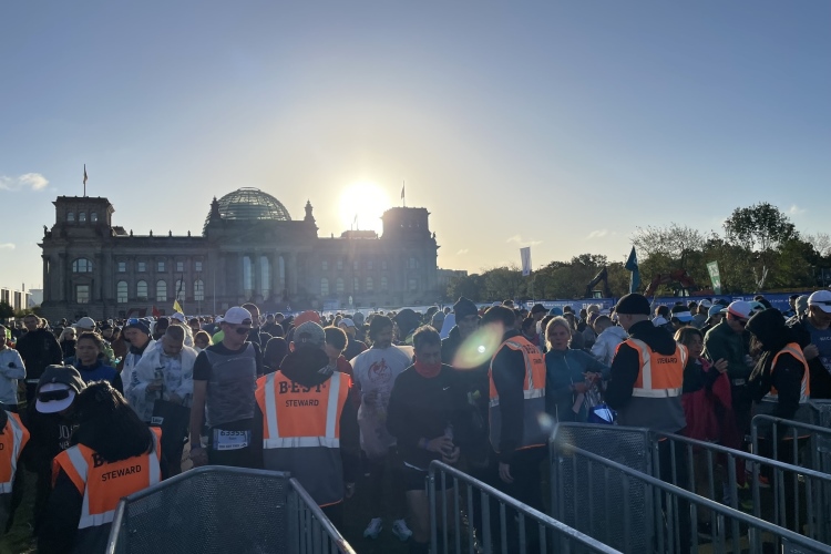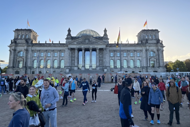 Am nächsten Morgen fahren Andreas und ich mit der S-Bahn bis zum S-Bahnhof Brandenburger Tor - die Fahrkarte für das Veranstaltungswochenende ist im Teilnahmebetrag von 200 € enthalten. Vom S-Bahnhof ist es nicht weit zum Veranstaltungsgelände am Reichstagsgebäude, welches wir nach Kontrolle der Startnummer und des Armbändchens betreten dürfen.
