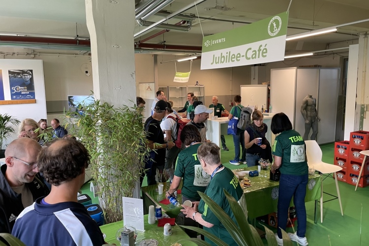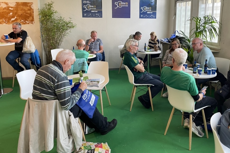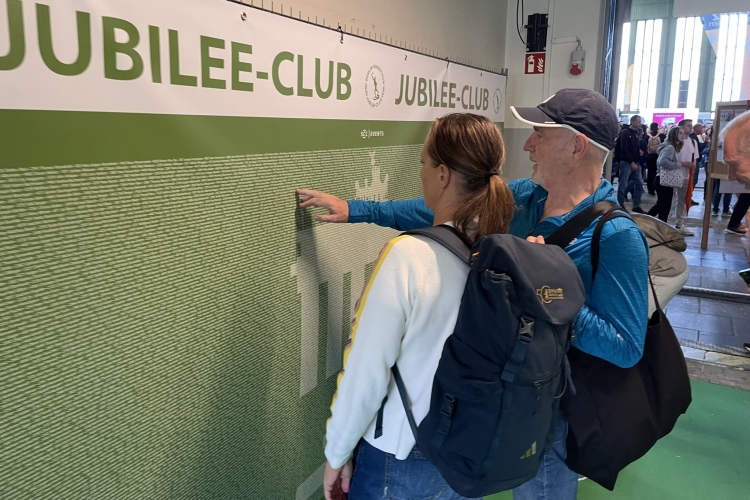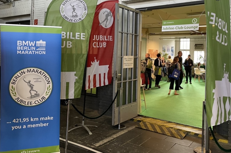 Ich finde mich lieber im Jubilee-Café ein, extra für uns Mehrfachstarter eine Oase in der Hektik der Messe. Neben Kaffee und Kuchen erhalten wir dort unsere Rückennummer, an der erkennbar ist, wie oft wir hier schon gestartet sind. In meinen Fall 27x, am morgigen Sonntag werde ich also den 28. Berlin-Marathon im Kasten haben. Dies scheint viel, aber es gibt mindestens 200 Läufer, die noch öfter dabei waren, der Rekordhalter sogar 47-mal. Einige von diesen Haudegen werde ich morgen oft der Strecke treffen. Wenn es eine Wertung gäbe mit der Zählung der meisten aufeinanderfolgenden Teilnahmen, dann wäre ich mit ebenfalls 27 – ich habe keinmal ausgesetzt – wohl weit vorne. Dies ist zwar völlig unerheblich, macht mich aber trotzdem ein wenig stolz. Auf einer großen Leinwand sind alle der über 5000 Jubilee-Mitglieder namentlich verewigt. Natürlich ist jeder bestrebt, dort seinen Namen zu entdecken.