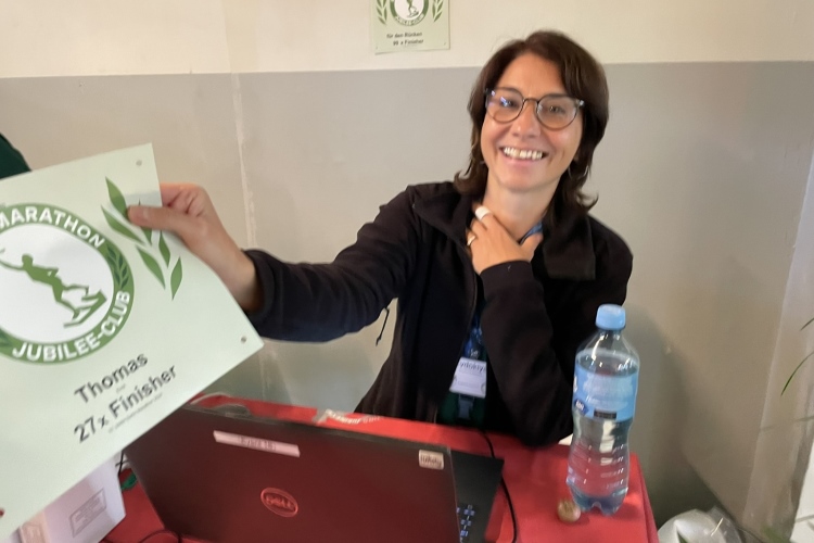 Fast möchte ich noch ein wenig bleiben, aber das Ziel, das wir über einen blauen Teppich erreichen, lockt. Ich blicke mich zu den nach mir folgenden Läufern um und sehe Emotionen pur. Auch für mich war es heute ein besonderes Erlebnis, abgerundet durch eine besondere Medaille.