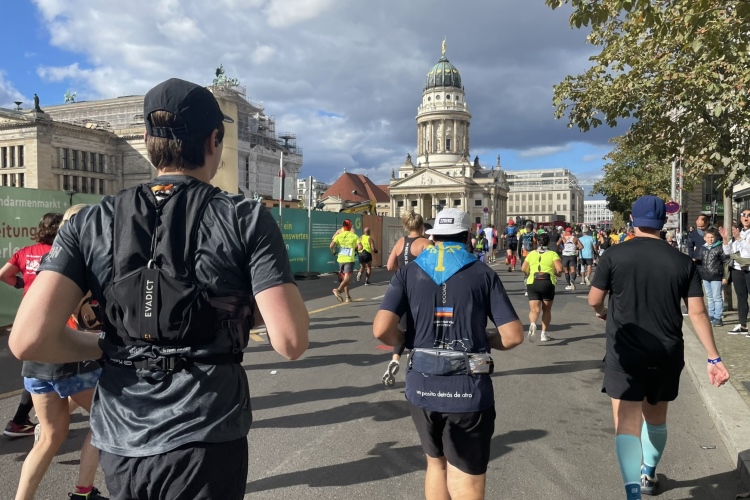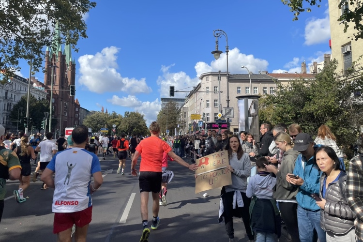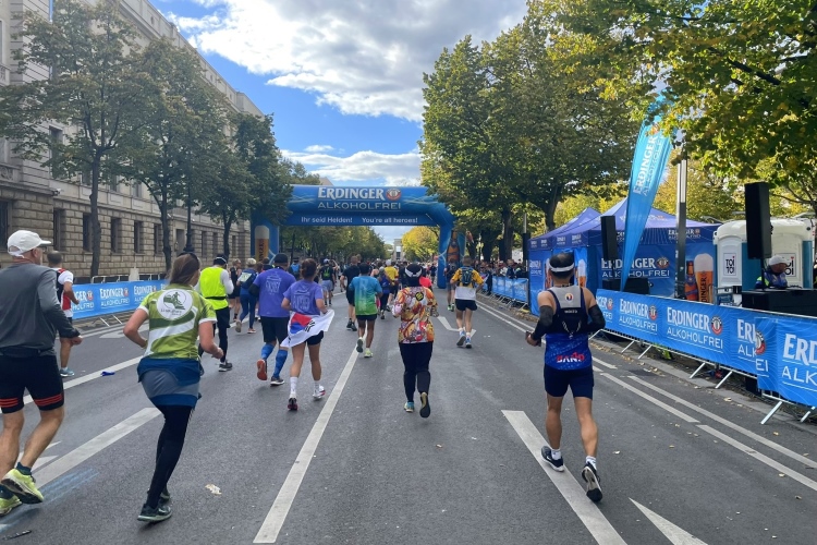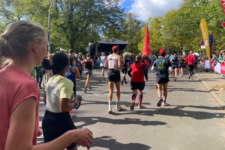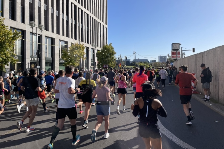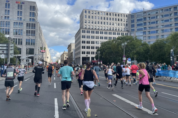 So beflügelt geht es auf die letzten 5 Kilometer. Schon bald werden wir von der nächsten Berliner Laufcommunity „Run Berlin“ und einer weiteren Trommlergruppe angefeuert. Keine Gnade für die Ohren … und die Wade, denn jetzt folgt der Zuschauer-Hotspot Potsdamer Platz und da wollen wir keinen schlechten Eindruck hinterlassen.