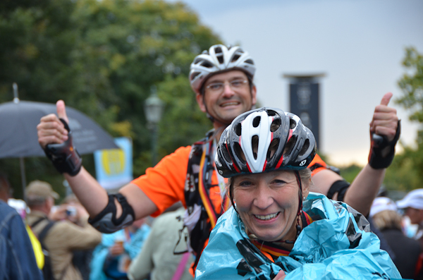 Allein die letzten Meter sind ein Erlebnis für sich. Der Wind kommt mit einer Kraft, als wolle er es uns auf dem letzten Kilometer zeigen und es beginnt zu regnen. Kein Windschatten vor mir, der mir Schutz bieten könnte. Vor uns die letzte Kurve und noch mehr Wind. Regen hat das Pflaster am Brandenburger Tor mit frischem Glanz lackiert.