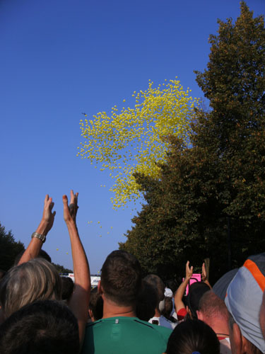 Den Startschuss zum Marathon gibt Klaus Wowereit, der Regierende Bürgermeister von Berlin, zusammen mit Fußball-Bundestrainer Joachim Löw. Vorher erklingt der Bolero von Maurice Ravel und es fliegen Hunderte gelber Luftballons in die Luft.