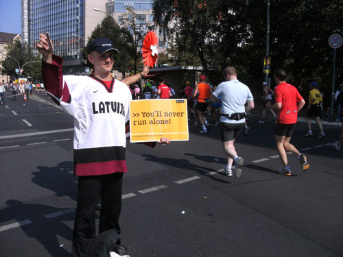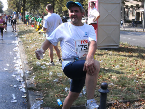 Hier möchte ich Konrad Beikircher zitieren, den Botschafter der rheinischen Philosophie und Sprache. Ihn besuchte ich am Abend noch bei einer Vorstellung in der Distel und er kam auch auf den Marathon in Berlin sprechen. Sinngemäß äußerte er sich, dass es nicht so gemütlich wie in Köln gewesen sei, man habe auch keine Pappnasen getragen!