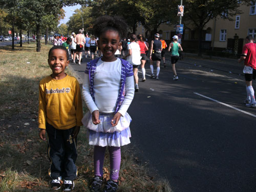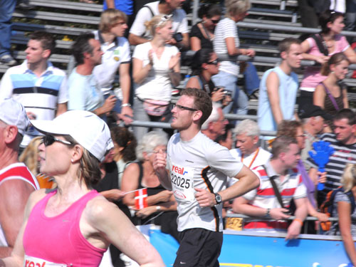 Nicht nur die Freizeitläufer mussten unter den hohen Temperaturen leiden. Auch Haile hat es getroffen. Er scheitert diesmal mit seinem Vorhaben, einen weiteren Weltrekord in Berlin zu laufen. Im „vorbeilaufen“ stellt er jedoch eine neue Bestmarke über 30 KM mit 1.27,49 Std. auf. Danach steigen die Tempomacher aus und ihn verlassen die Kräfte. Duncan Kibet gibt nach KM 30 wegen Hüftproblemen auf und Francis Kiprop kommt Haile bis auf eine Minute nahe. Haile ist aber wieder als Erster im Ziel und ist damit der erste Läufer, der viermal hintereinander in Berlin gewinnt. Glückwunsch!