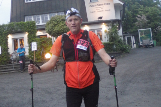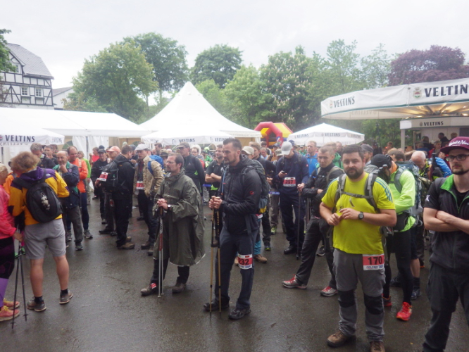 Eigentlich hatte ich mich für die Neue Laufdistanz von 111 km entschieden, musste jedoch bei genauerer Kalkulation unter Einbeziehung meines derzeitigen Leistungsstandes eingestehen, dass ich die Sollzeit von 15.30 Std. nicht würde schaffen können. Die 100 Meilen steckten mir auch noch in den Beinen. So entschied ich mich kurzerhand bei meiner Anreise am Freitag die 101 km als Marsch anzugehen. Somit auch kein Stress mit Sollzeiten und der doch etwas negativen „Un“-Wetterprognose. Dies ist dann auch mein 5tes Mal, dass ich diese Distanz in Bödefeld im Sauerland bestreite.