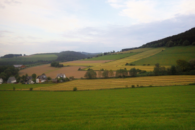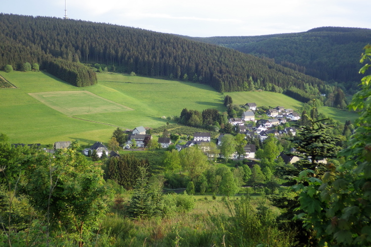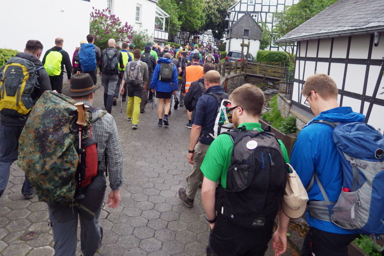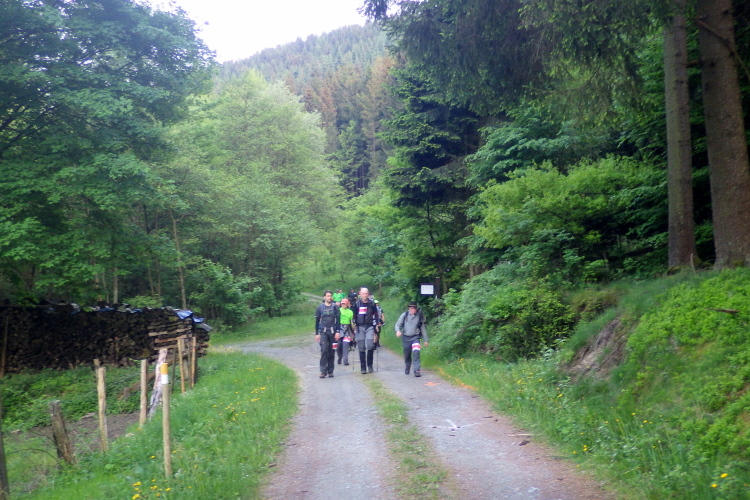 Jetzt läuft man auf der gleichen Strecke zurück. Ab der Nassen Wiese geht es dann fast ununterbrochen nur noch bergab durch die Mechterkuse dem Ziel entgegen. Gelegenheit, für die tolle Veranstaltung und das sichere und gesunde Ankommen zu danken. Dann durch den Ort noch mal etwas hinauf bis ins Ziel.