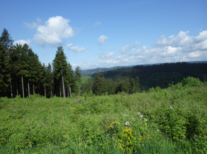 Doch zunächst einmal etwas zu dieser Veranstaltung: Hollenmarsch und nicht Höllenmarsch ist der Name dieser hervorragend organisierten Veranstaltung. „Hollen“ sind eigentlich die guten Berggeister, deren „Haus“, bzw. Höhlen wir bei km 5 passieren werden. Also geht es doch nicht nur durch die grüne „Hölle“ des Sauerlandes, sondern durch, bzw. über die schönen Berge und Hügel. Man(n) durchquert die schönsten Naturgebiete des Hochsauerlandes mit steilen An- und Abstiegen. Teilweise erfordern schwierige Wegeführungen über den Rothaarsteig die volle Konzentration, aber dafür entschädigt dich die herrliche Natur mit interessanten Ein- und Ausblicken.
