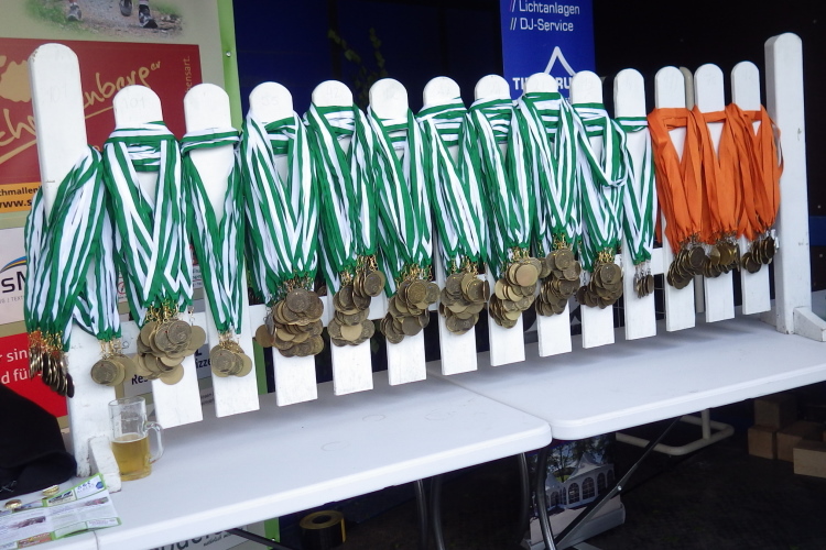 Toll, die 101km sind in 18.29 Std. geschafft, Gerade will ich meine Frau Martina anrufen, um zu sehen, wo sie auf Ihrer Strecke ist, als ich Sie auch schon auf der Zielgerade sehe. Perfektes Timing und Bestzeit ist es auch noch. Gemeinsam gehen wir zu unserem Hotel Albers zum Duschen. Dann geht ein heftiges Gewitter mit viel Regen runter. Als es etwas trockener wird, gehen wir wieder zum Ziel und genießen noch etwas die Hollenparty und den Einlauf der restlichen Teilnehmer. Um 21.30 Uhr ist Schluss für alle. Von den gut 200 Startern über die 101 km erreichen 137 das Ziel, davon 23 Frauen. Bei den 111 km Lauf sind es 30 Finisher.