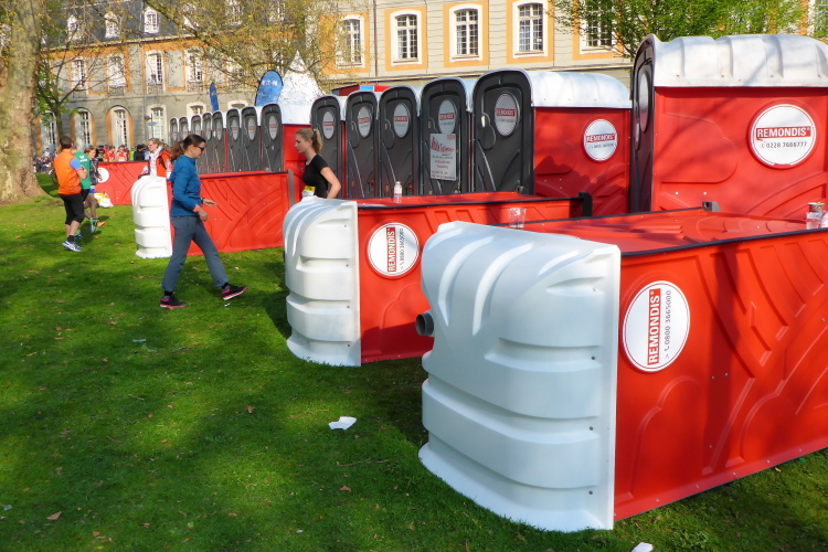 Die Startblocks sind nicht mehr ganz frei, nur unter dem Koblenzer Tor ist im Schatten noch Platz. Der Marathon startet um kaiserliche 10:30 Uhr. Ich habe an meinen Champion Chip gedacht. Wer den vergisst, keine Panik, man kann sich immer noch einen am Nachmeldeschalter leihen.
