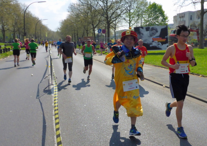 Es beginnt die zweite Runde. Bei meinem Lauf durch die Friedrichstrasse fühle ich mich super. Links, 5 Meter von der Laufstrecke entfernt, ist das Geburtshaus von Beethoven. Ich erinnere mich, wie ich Mohamad Ahansal hierher brachte und er vor Glück fast weinte.