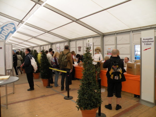 Den blinden Marathonläufer Henry Wanyoike („Mein langer Lauf ins Licht“, lesenswert) suche ich vergebens. Er ist Weltrekordhalter der Blinden u. a. im Halbmarathon, wo er am Sonntag auch antreten wird und sollte eine Autogrammstunde geben, hat sich aber wohl schon wieder verdünnisiert. Unsere Startunterlagen hole ich bereits heute ab, damit wir am Lauftag nicht zu früh anfahren müssen. Die Starttüte enthält neben einiger Werbung einen Gutschein für ein schönes Funktionshemd, das in der Startgebühr enthalten ist. Genau so wie ein Essen- und zwei Getränkegutscheine, die man nach dem Lauf einlösen kann. Die Nutzung der öffentlichen Verkehrsmittel ist am Veranstaltungstag übrigens auch im Preis inbegriffen, ein Service, den ich sehr schätze und auch nutzen werde.