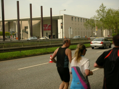 Neben dem Marathon werden hier noch Halbmarathon, Firmenlauf, Schulmarathon, Walking, Inline-Skating und Handbiking angeboten. Wie in den vergangenen Jahren genießt der Halbmarathon den größten Zulauf. 10.104 Läuferinnen und Läufer haben sich für die verschiedenen Disziplinen vorangemeldet und damit die ersehnte Schallmauer von 10.000 Voranmeldungen durchbrochen (davon 1.787 Marathonis und 6.598 Halbmarathonis). Hierzu werden aufgrund der guten Witterungsbedingungen ganz sicher noch etliche Nachmelder gekommen sein. Letztlich werden knapp 9.000 Läuferinnen und Läufer heute im Ziel registriert, beim Marathon 1.361. Da freut sich die Kasse des Veranstalters, aber viele Ausfälle sind das schon. War es 2005, damals noch Anfang April, sehr frisch, genießen wir heute geradezu ideales Wetter, eigentlich fast ein schon ein wenig zu warm. Hoffentlich geht’s dem Joe (Kelbel) in Hamburg genau so gut.