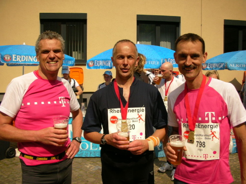 Die Gute, lateinisch: Bon(n)a, also das heutige Bonn, bietet zum neunten Mal den Schauplatz – nein, nicht für das, was Ihr jetzt denkt – für ein Großereignis besonderen Kalibers. Die Gute rief und viele sind zum ersten der vier in diesem Jahr veranstalteten rheinischen Großmarathons gekommen. Eigentlich wollte ich ja keinen mehr doppelt laufen, um an möglichst vielen Orten neue Eindrücke sammeln zu können. Aber mein lieber Kollege und Fast-Nachbar Eugen, ein Radfahrer, nein, neudeutsch „Biker“ vor dem Herren fragte an, er würde gerne mal einen Marathon laufen und wie das denn ginge und überhaupt. Natürlich war es für mich Ehrensache, ihn nicht alleine seinem Schicksal zu überlassen.