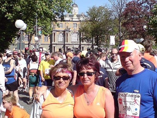 Nachdem wir – Martina, Marianne und mein Arbeitskollege Helmut – unsere Kleiderbeutel abgegeben und die obligatorische Warteschleife vor den Dixis hinter uns gebracht haben, trudeln wir langsam und gemütlich in Richtung der Startaufstellung am Bonner Stadtgarten.