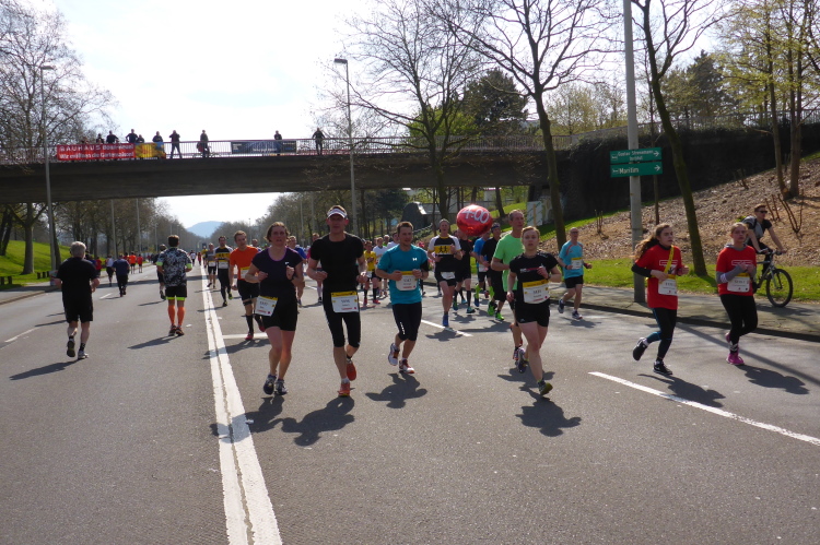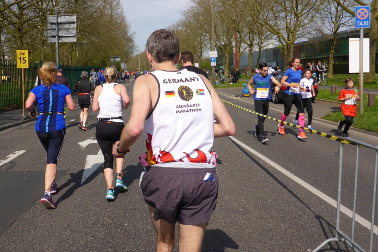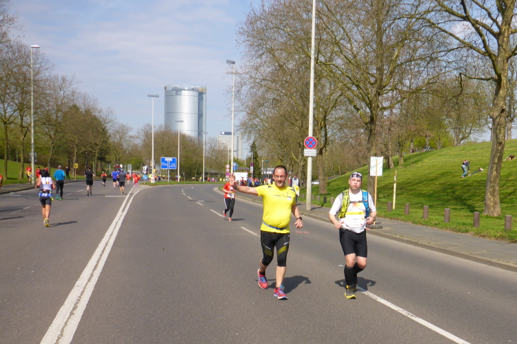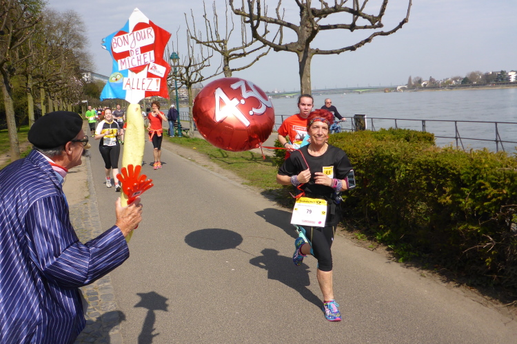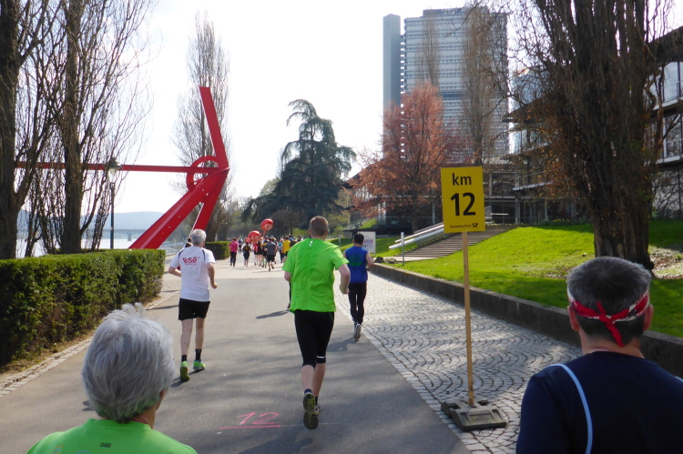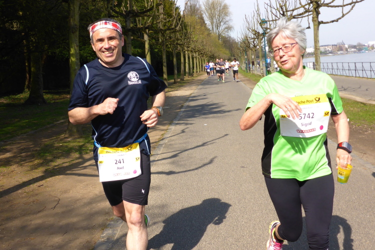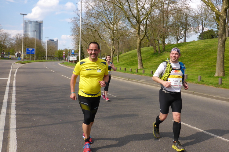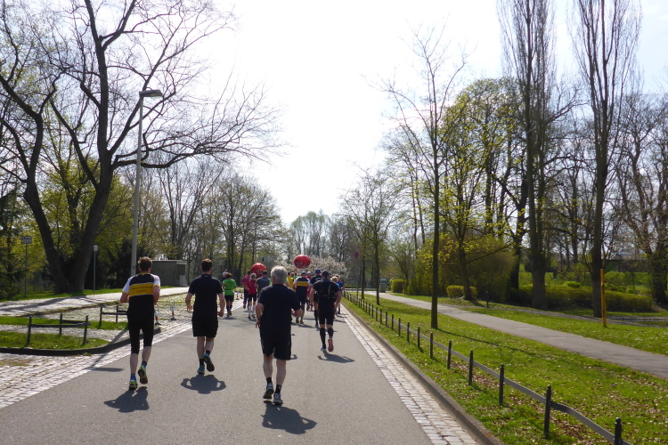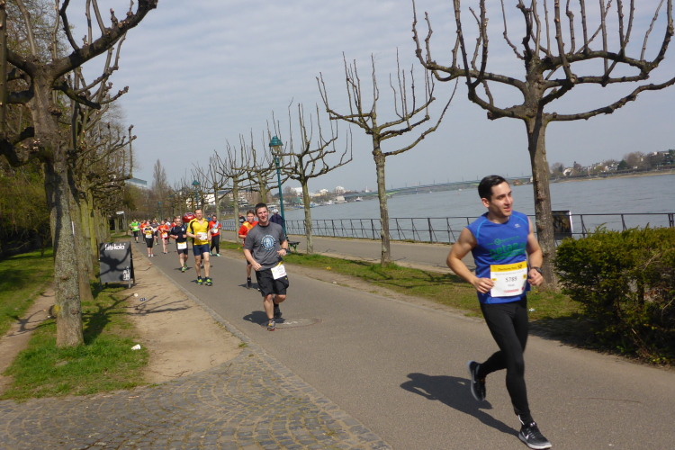 Mit dem „Anstieg“ zur Kennedybrücke beginnt die zweite Runde. „Joe, du musst auch mal schreiben, wieviel Höhenmeter die Strecke des Bonn Marathons hat!“ Also: die zweite Runde, ist absolut identisch mit der ersten, hat aber bedeutend mehr Höhenmeter. Ich lasse mich deswegen zurückfallen, um Kräfte zu sparen.