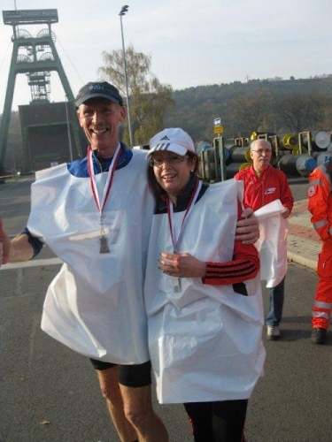 Hand in Hand laufe ich mit Lara durchs Ziel. Nach 5:33:46 kann ich die Uhr anhalten und belege damit Platz 8 in meiner Altersklasse. Ich erhalte eine schöne Medaille in Form des Förderturms und dankbar nehme ich die Glückwünsche meiner Fans entgegen. Ich war doch etwas unsicher, wie ich die Kilometer jenseits der Marathonmarke bewältigen kann. Aber das Geheimnis ist mal wieder das Tempo. Wenn man vom Start an etwas langsamer läuft, reicht auch am Ende noch die Kraft.