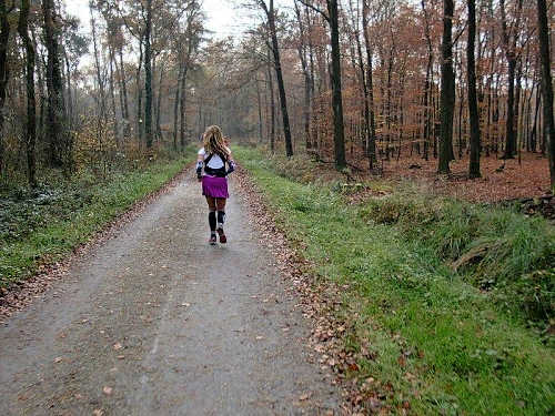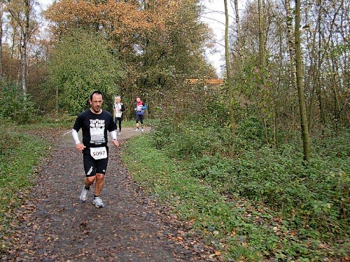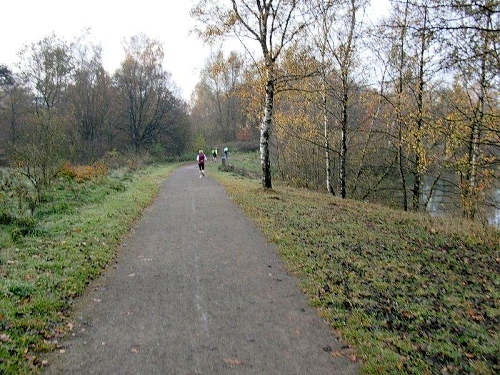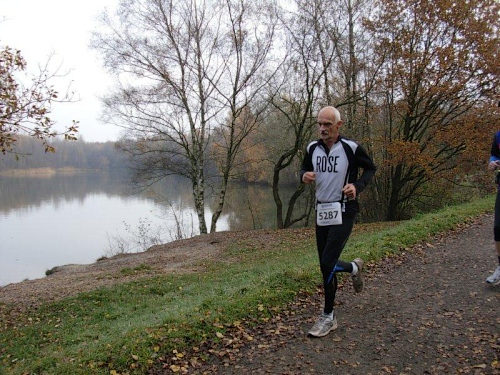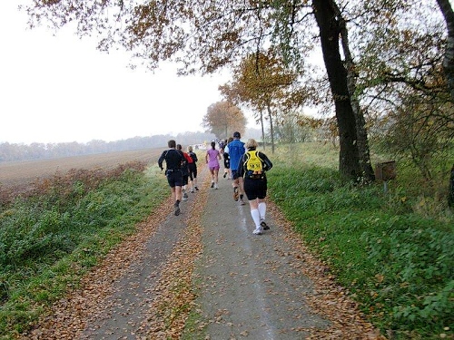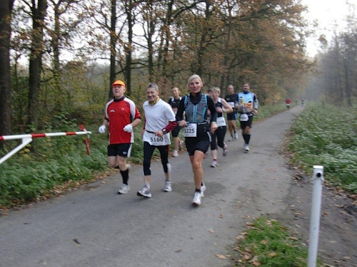 Auf einer langen Geraden geht es nun durch den Wald auf den Heidesee zu. Dieser ist mit 54 Hektar noch um einiges größer als der Heidhofsee. 2,5 Kilometer misst die Seerunde, das habe ich bei meinen Trainingsrunden schon ausgemessen. Hier kann ich sogar bei Dunkelheit laufen, da es auf den breiten Wegen immer noch genug Restlicht gibt. Jetzt werden wir von der Spitze des 25 Kilometerlaufes überholt, die 40 Minuten nach uns gestartet sind.